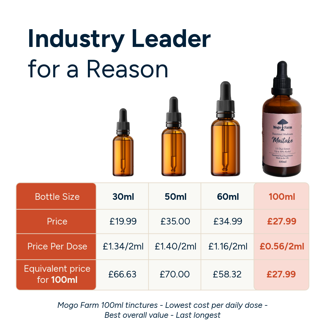 - 100ml size - 2x the mushroom content per bottle compared to the UK average