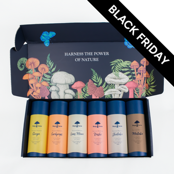 The UK’s most reviewed functional mushroom tincture set - six 100ml bottles, each made from 20,000mg of UK grown mushroom fruiting bodies. Sustainably cultivated, expertly extracted and bottled in Derbyshire using our proven 1:3 dual extraction method for maximum potency and bioavailability.